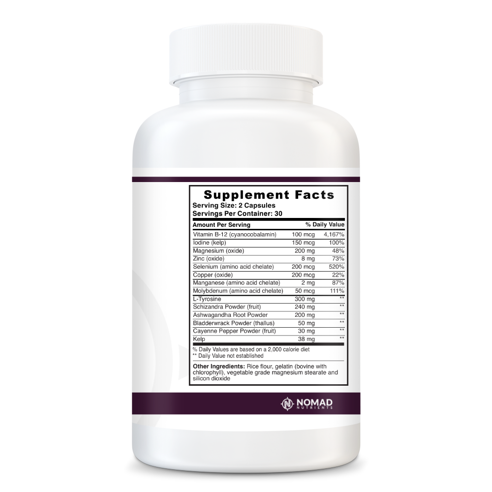 Supports and protects natural thyroid hormone function. Maintains energy levels., 60 capsules.